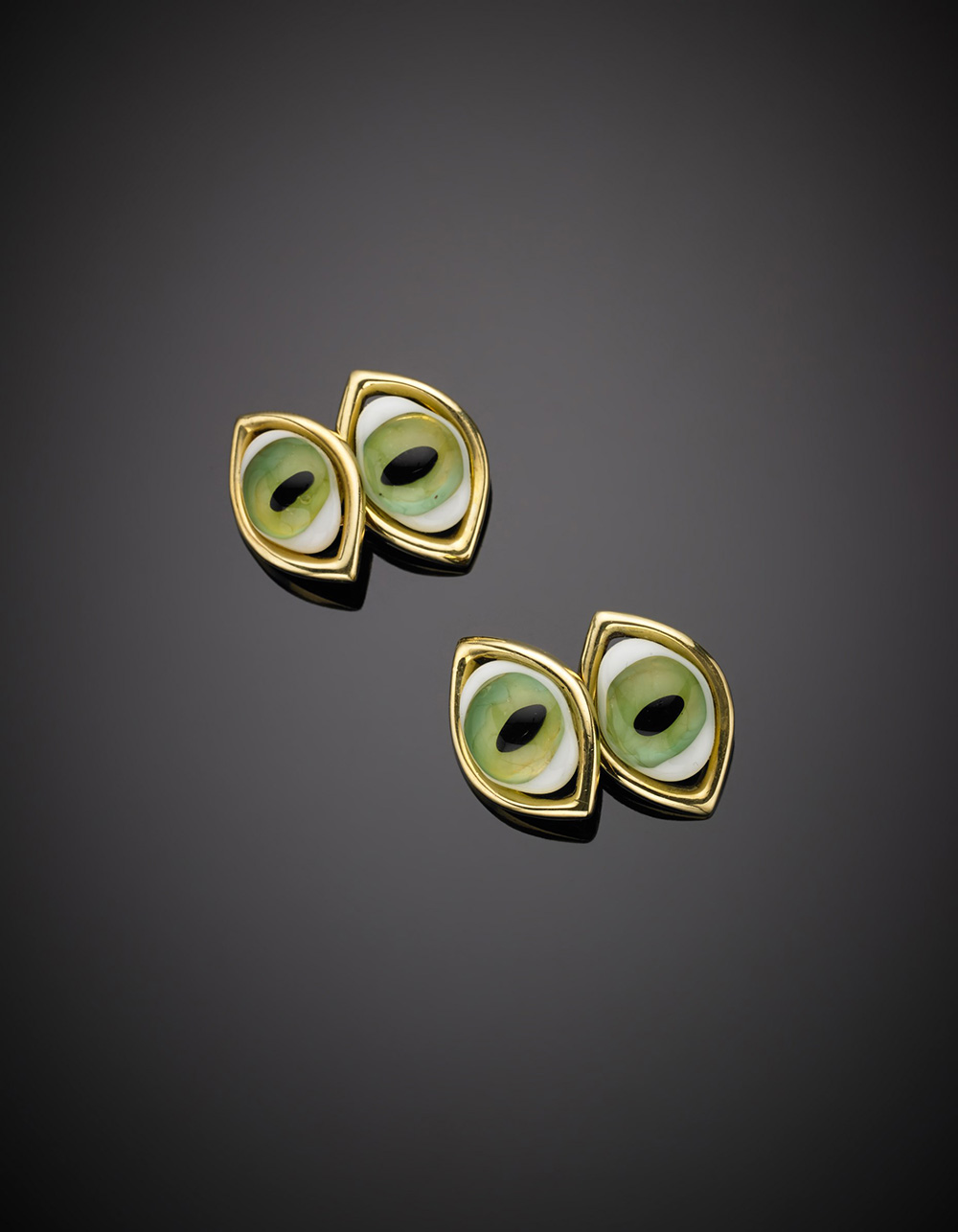 FARAONE Gemelli in oro giallo a con vetri a guisa di occhi di gatto, g.18,50....