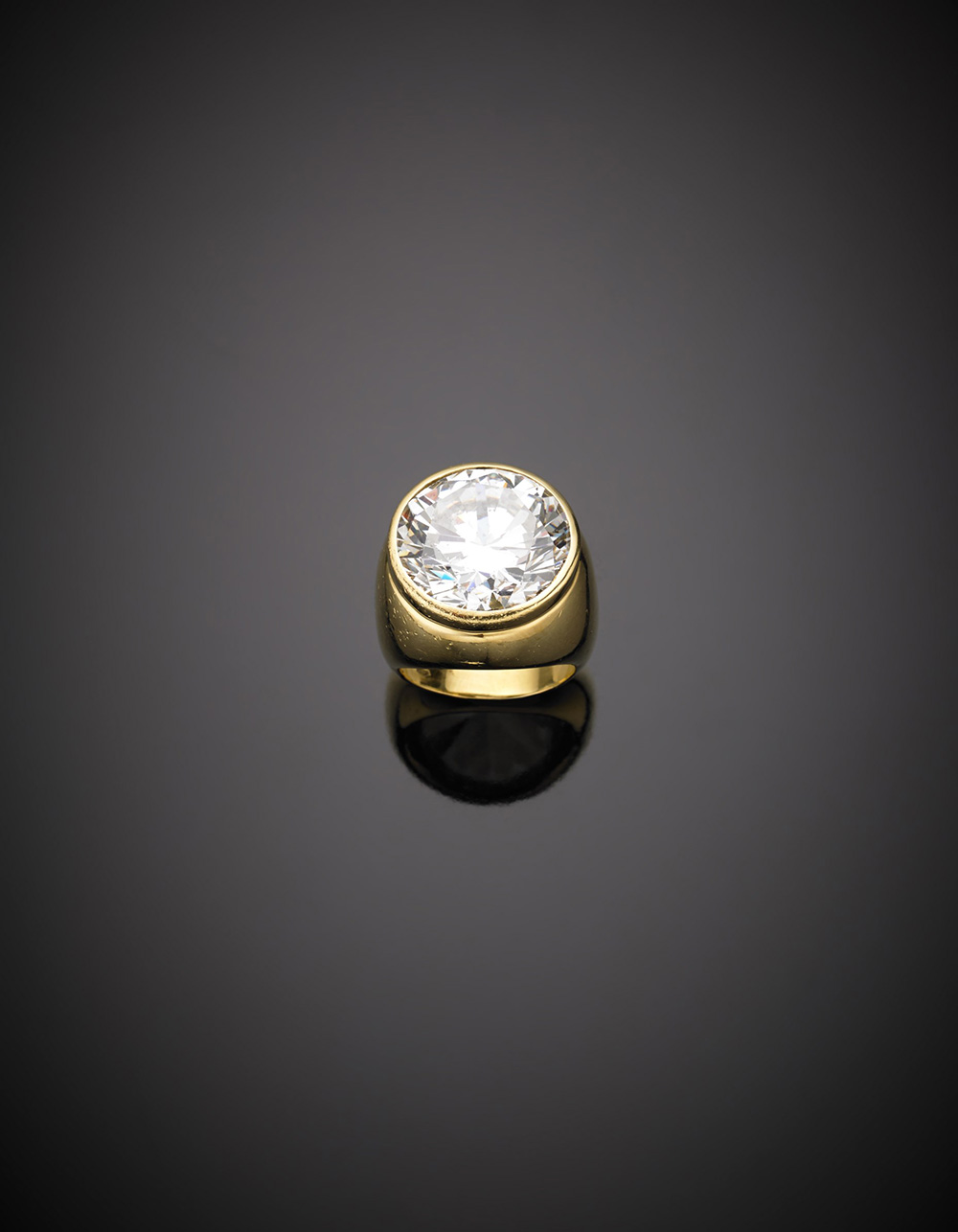 Anello in oro giallo con grande pietra incolore rotonda, g. 23, misura 14/54 Yellow gold with round colourless gem, g.23 size 14/54