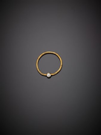 Anello a maglia tubogas in oro giallo e diamante montato su castone in oro...