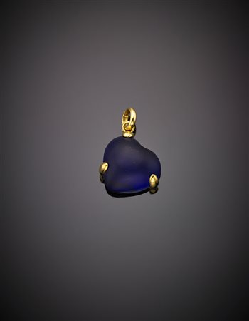 Ciondolo in oro giallo con pasta vitrea blu satinata a forma di cuore, g....