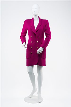 CHANEL Cappotto tre-quarti in lana bouclé fucsia con bottoni gioiello (tg 38/40) (lievi difetti) CHANEL A fucsia bouclé wool coat (size EU 38/40) (minor defects)