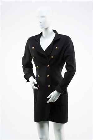 CHANEL Robe-manteau in lana nera con bottoni gioiello logati (tg 38/40) CHANEL A black wool dress-coat (size EU 38/40)