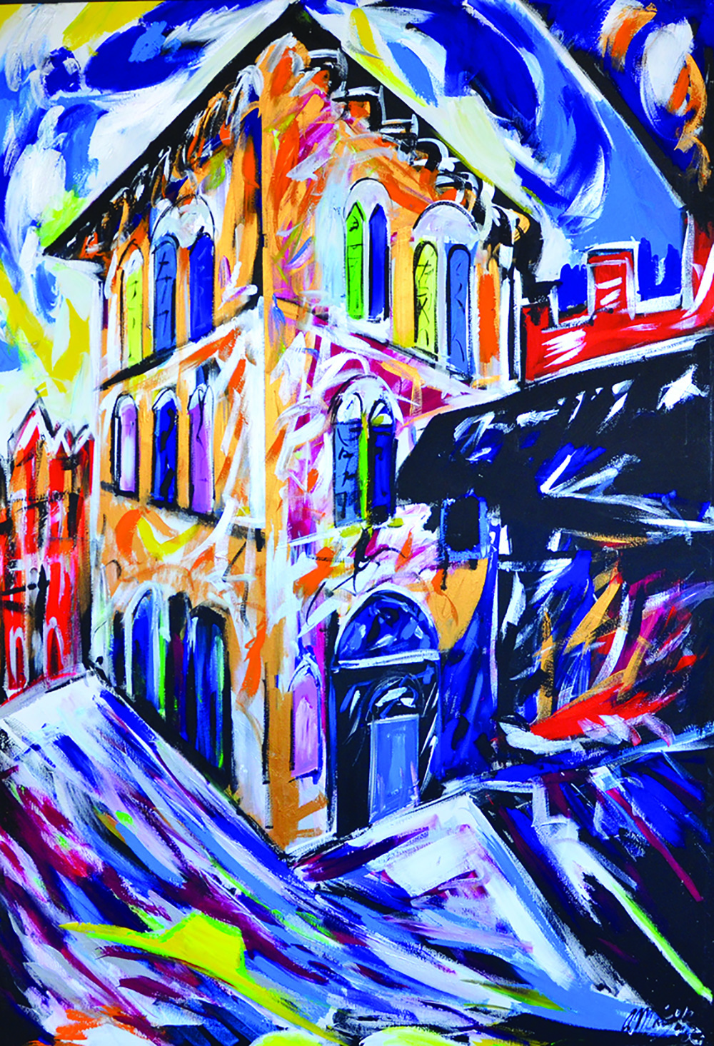 ALFONSO MANGONE Attraverso città: Firenze, 2012 tecnica mista su tela cm 150 x 100 firma in basso a destra Autentica su foto