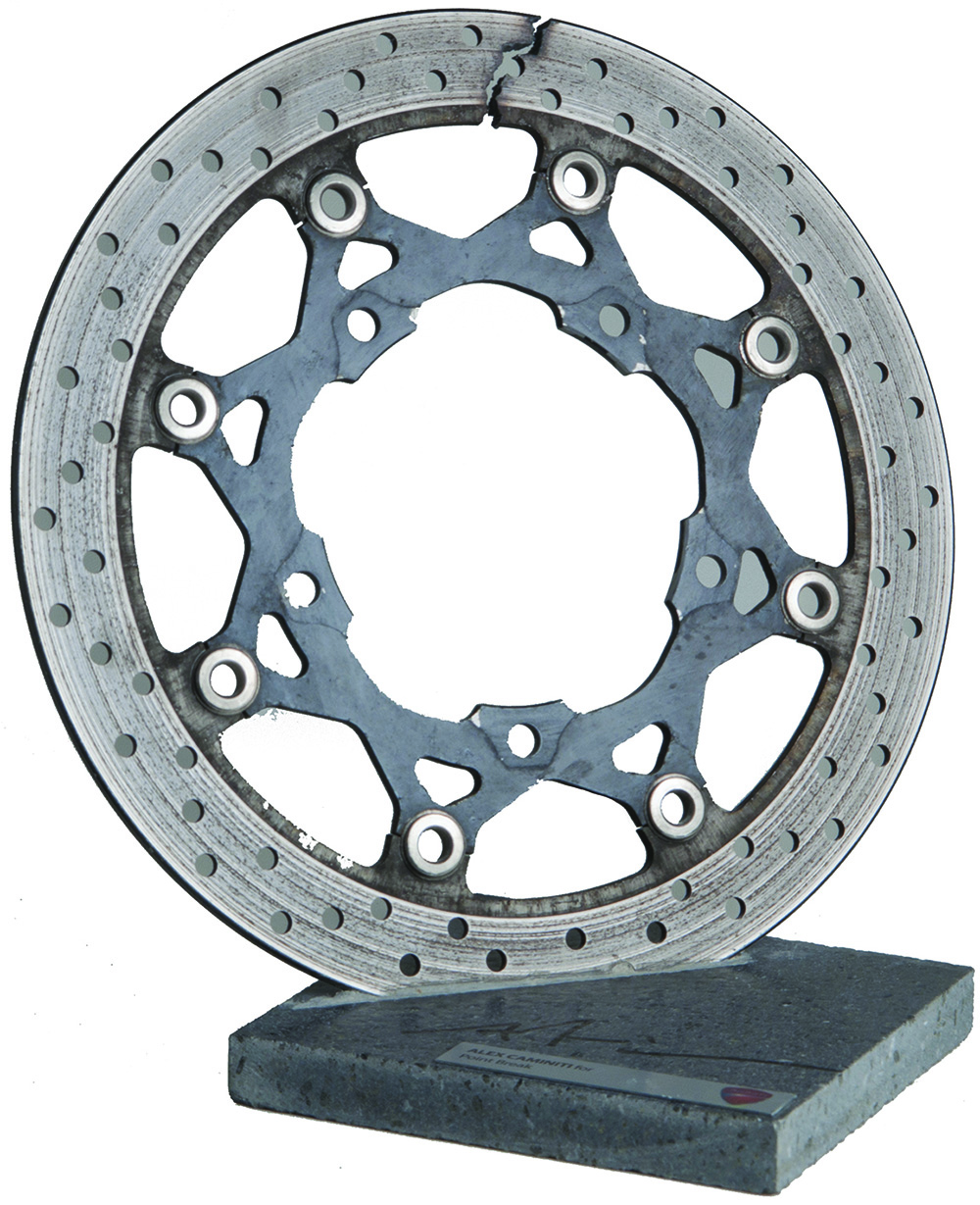 ALEX CAMINITI Ducati Punti di rottura, 2013 acciaio forato cm 32 x 30 firma in basso Autentica su foto
