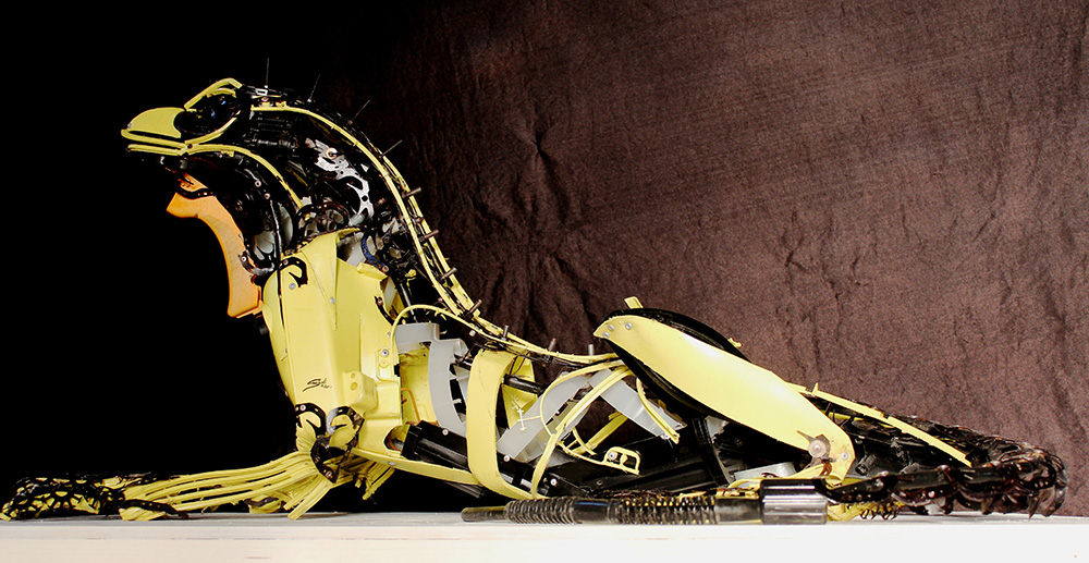SERGIO CIMBALI Iguana, 2014 riassemblaggio idropulitrice cm 100 x 60 x 60 firma lato sinistro Autentica su foto