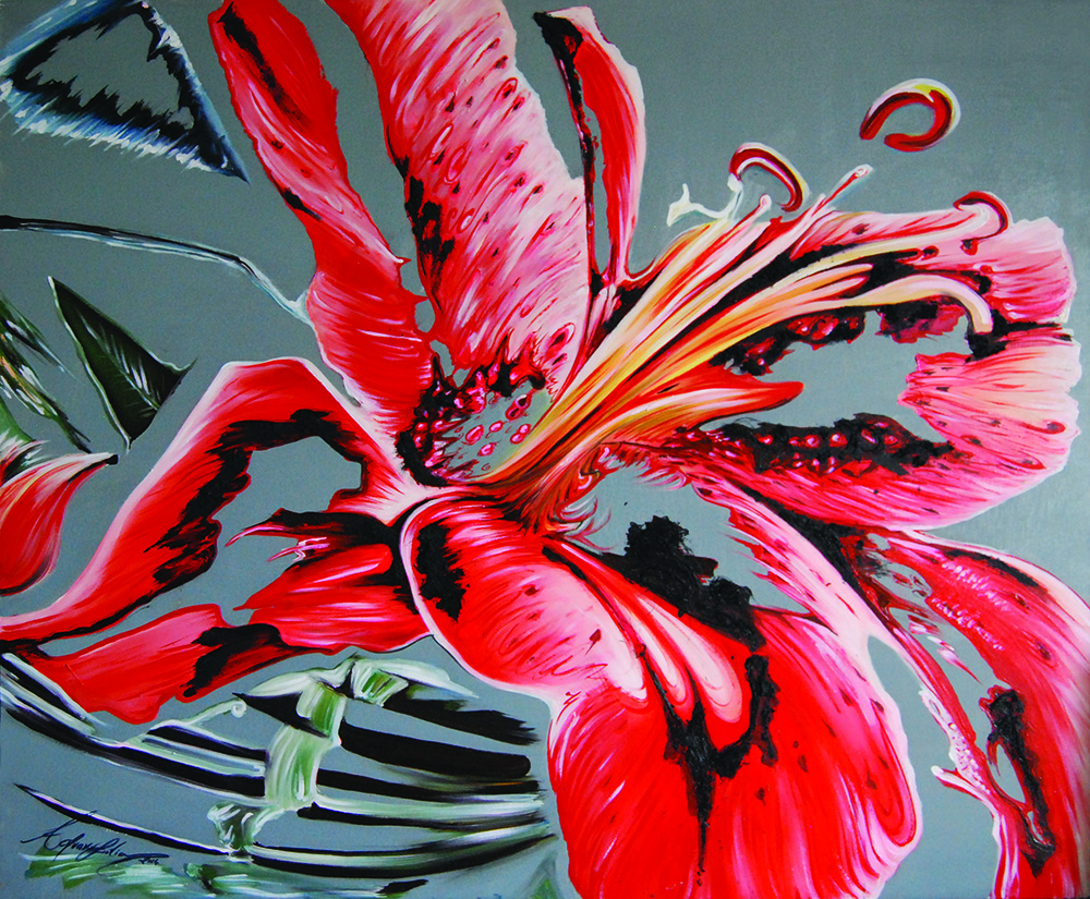 Lotto 75 | LIDIA ACQUAVIVA Lilium red, 2014 tecnica mista su tela di lino cm 100 x 120...