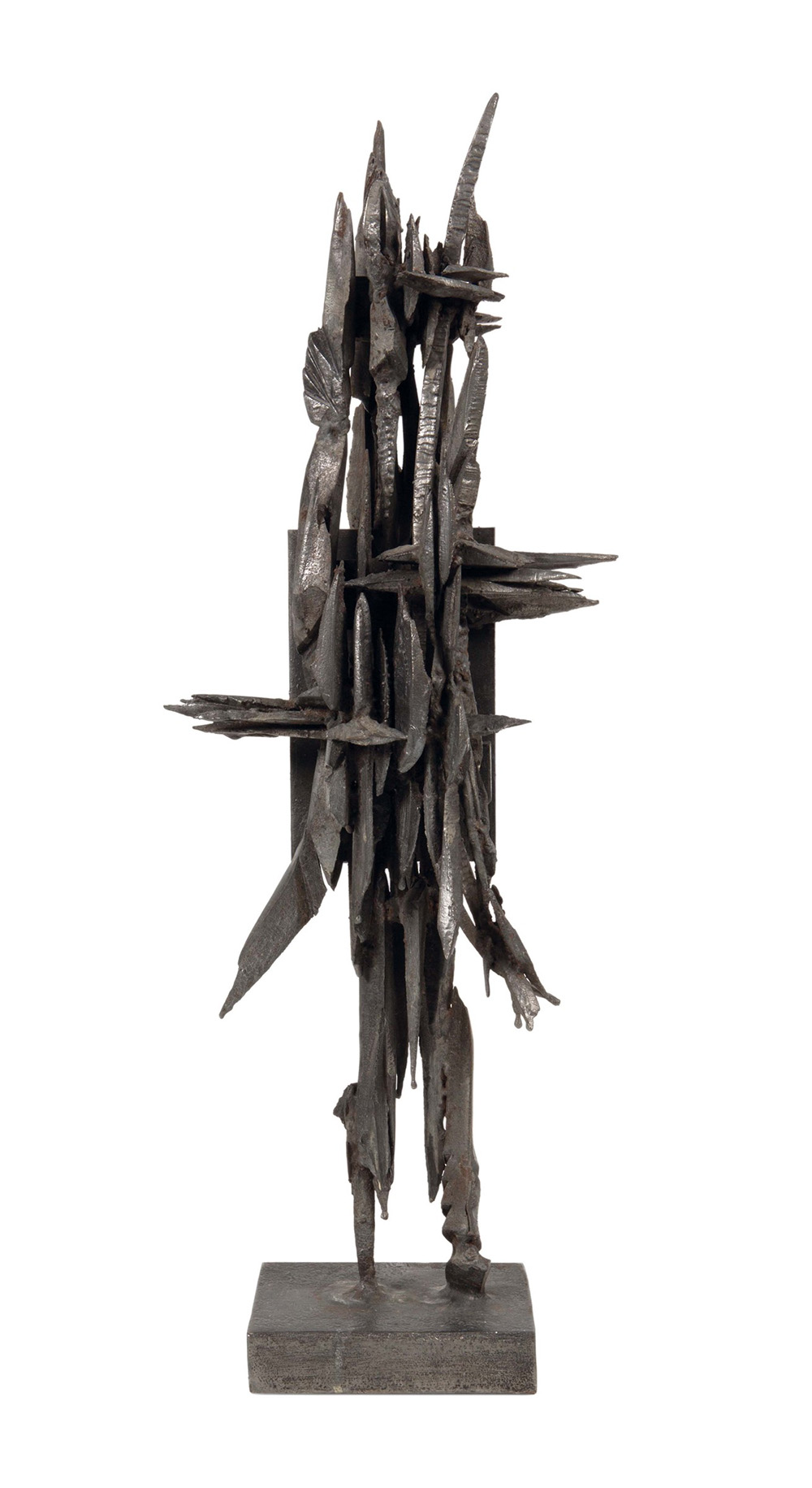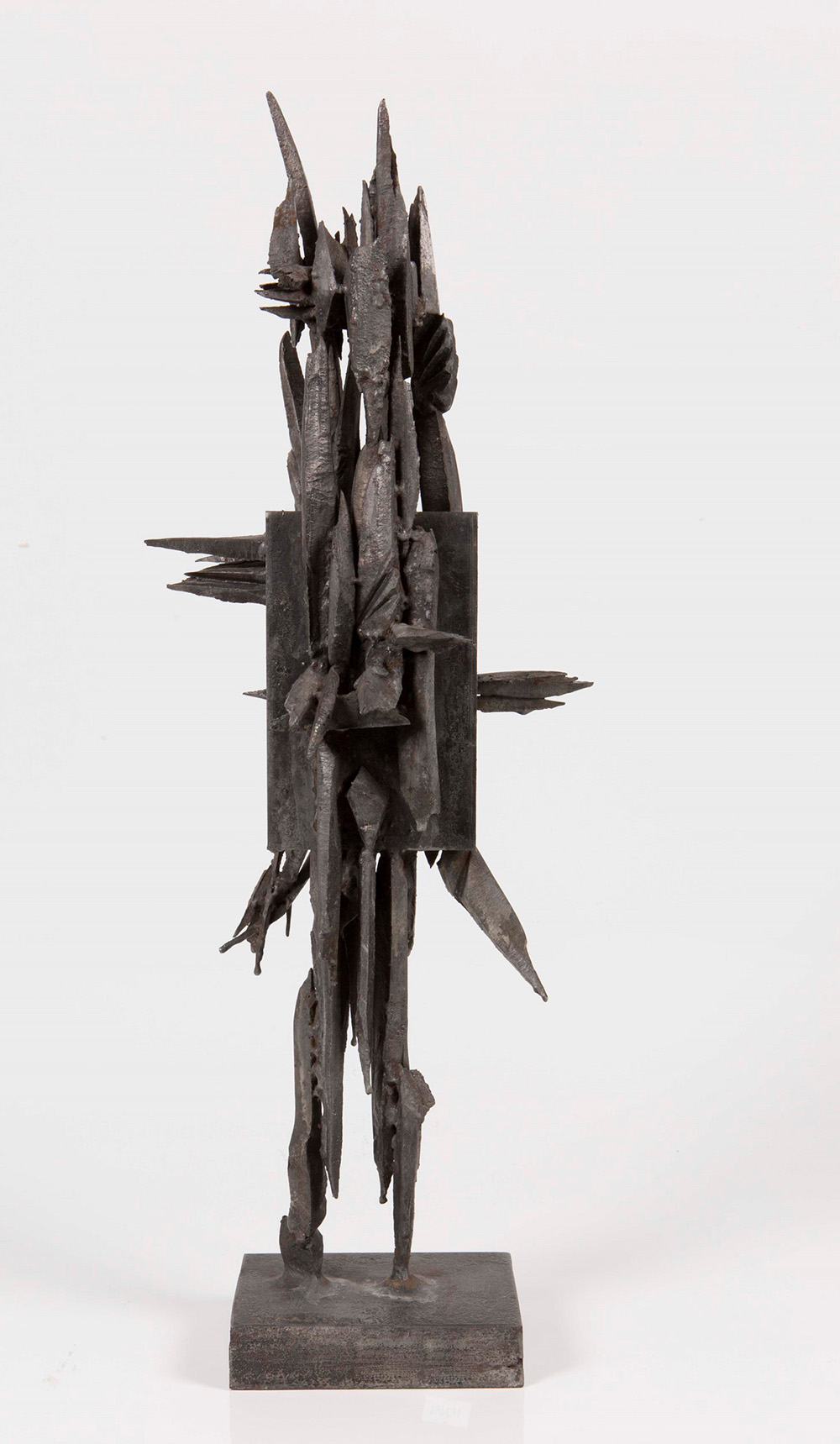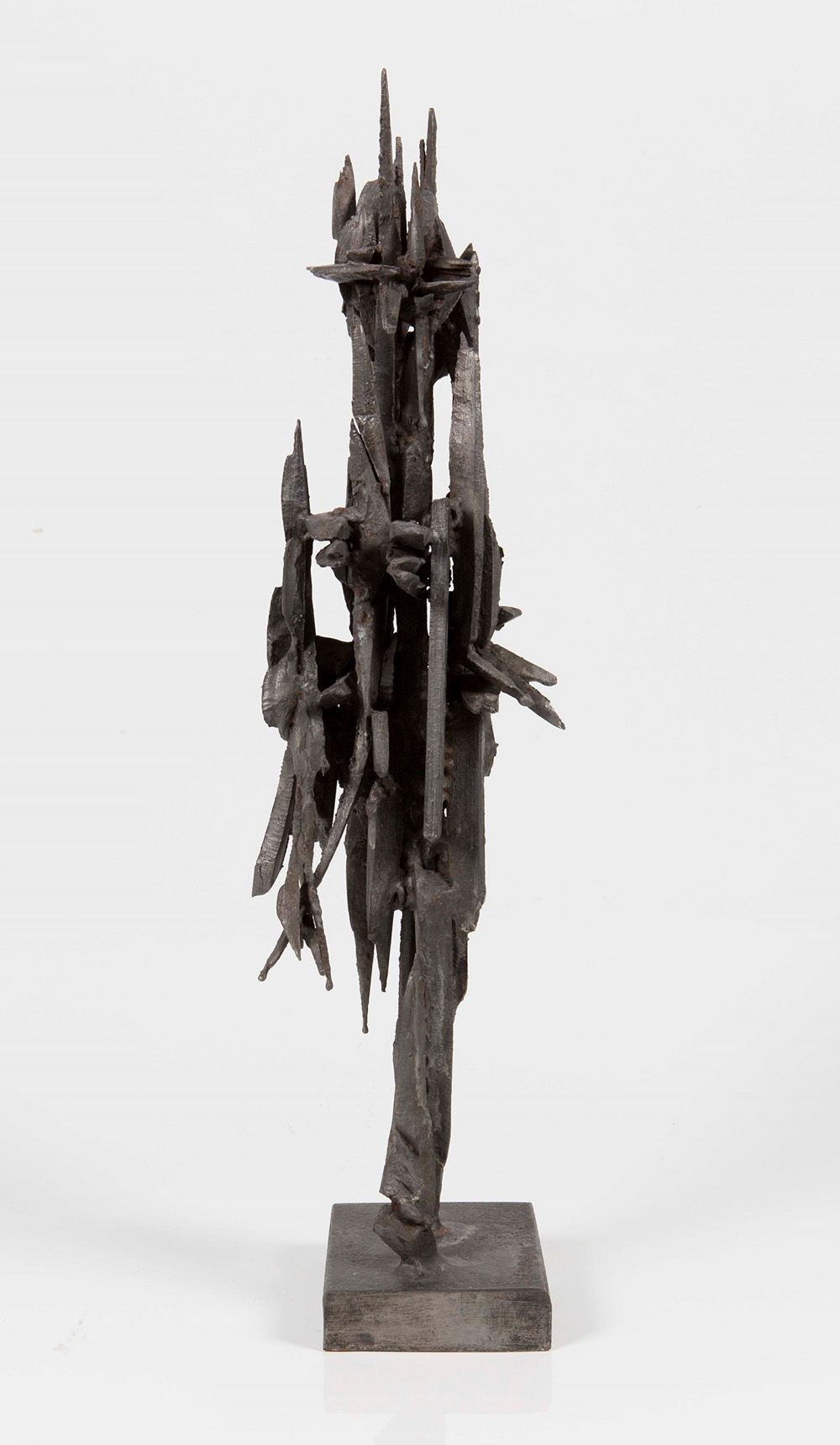 Agenore Fabbri (1911-1998), Personaggio lunare I, 1965 scultura in ferro stagnato, cm 60x15 firmato sulla base , Bibliografia: Agenore Fabbri. Catalogo Ragionato, vol. I Scultura, a cura di Volker W. Feierabend, Silvana Editoriale, 2011, pg. 344, S 65-06