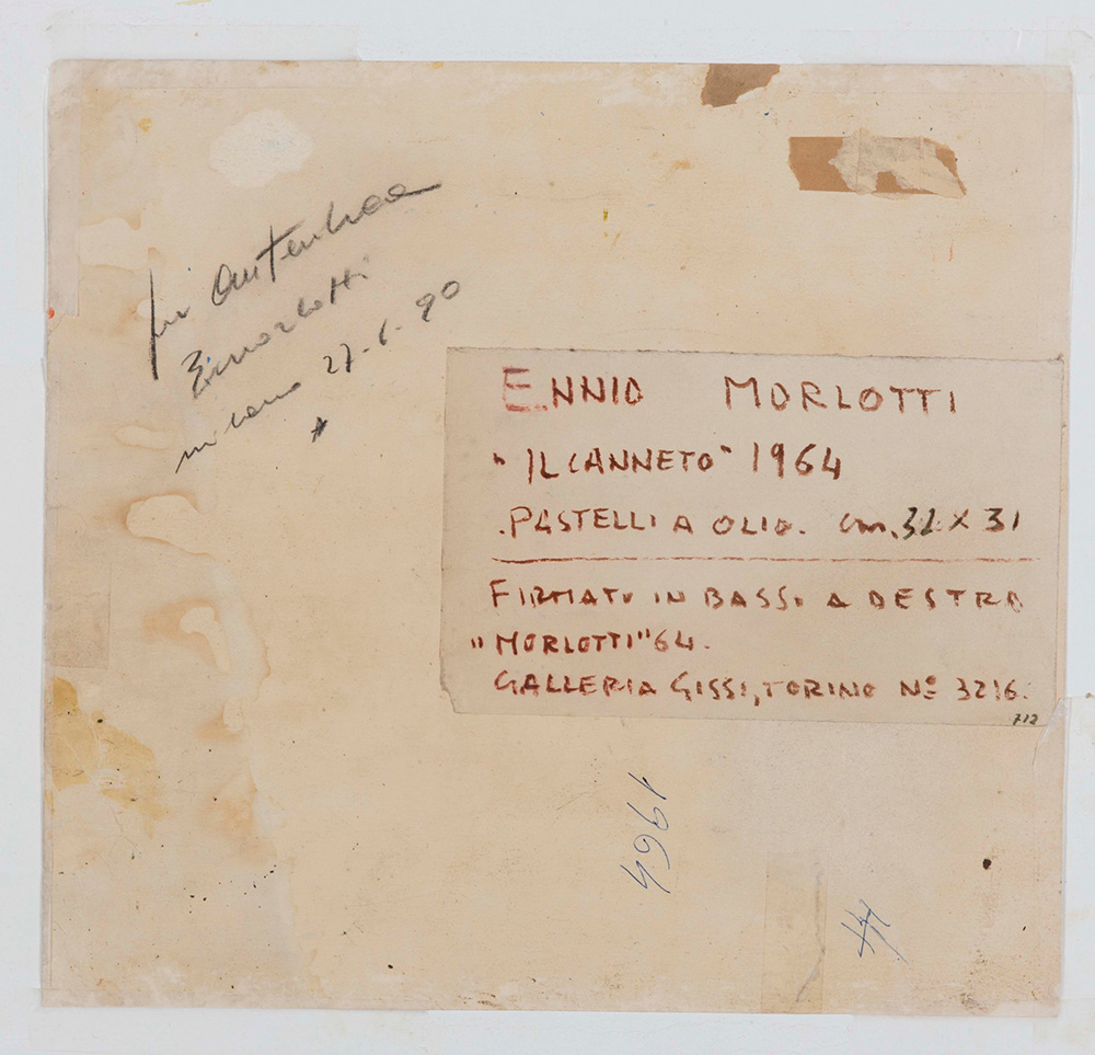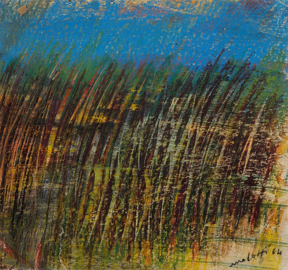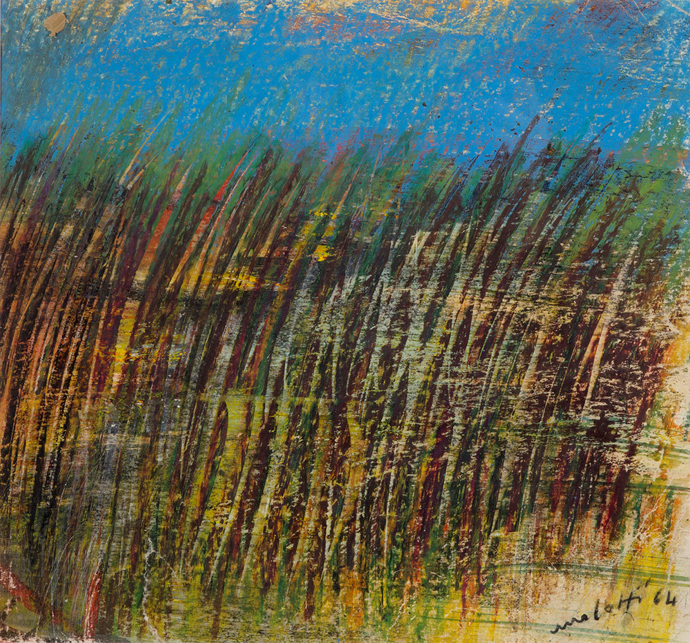 Ennio Morlotti (1910-1992), Il canneto, 1964 pastelli ad olio su carta, cm 32x31 firmato in basso a destra Autenticato al retro dall’artista in data 27 giugno 1990 , Provenienza: Galleria Gissi, Torino