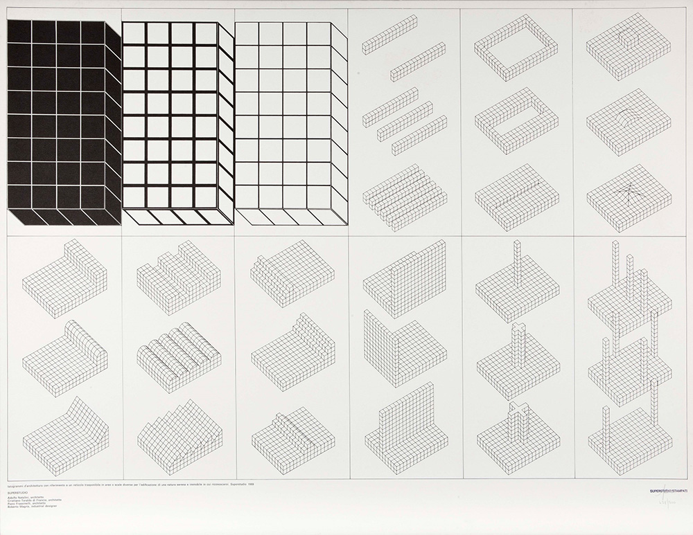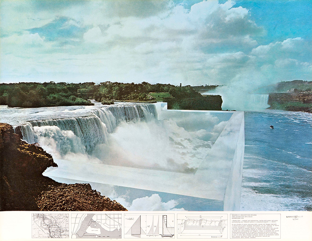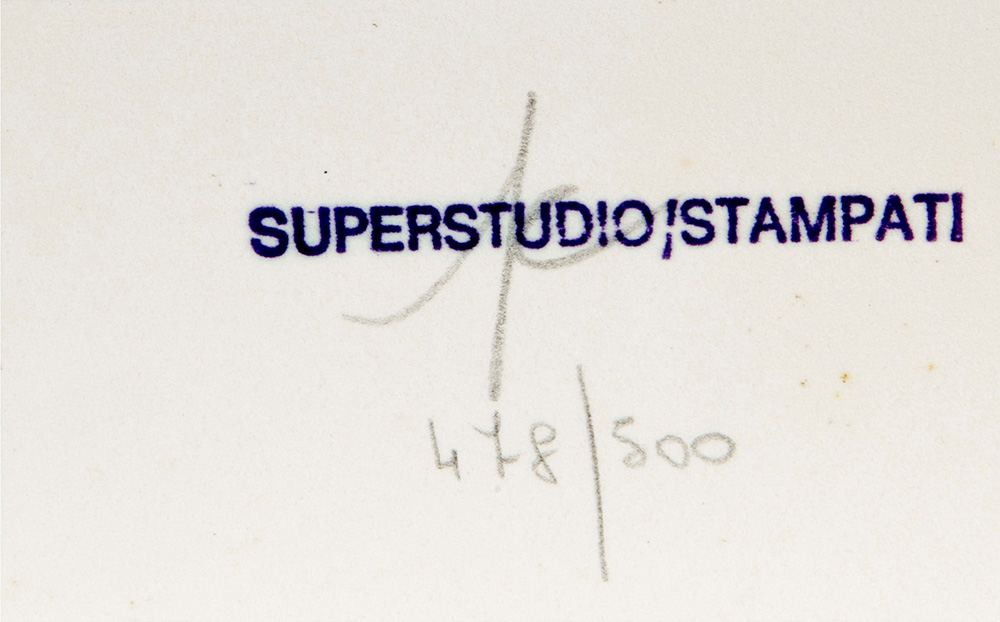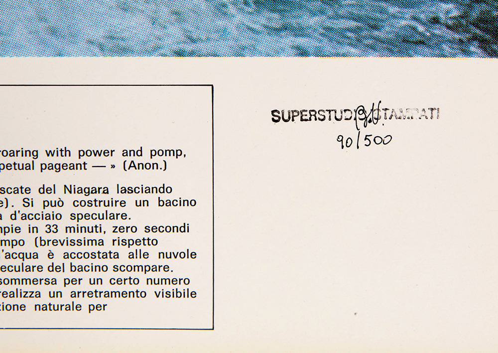 Superstudio Group (1966), Serigrafie (3): Un viaggio nella ragione, 1970 serigrafia su carta, cm 69x87 ed 283/500, Plura Edizioni, Milano Instogrammi, 1970 serigrafia su carta cm 69x87, ed 480/500, Plura Edizioni, Milano Niagara, 1970 serigrafia su carta, cm 69x87, ed 459/500, Plura Edizioni, Milano