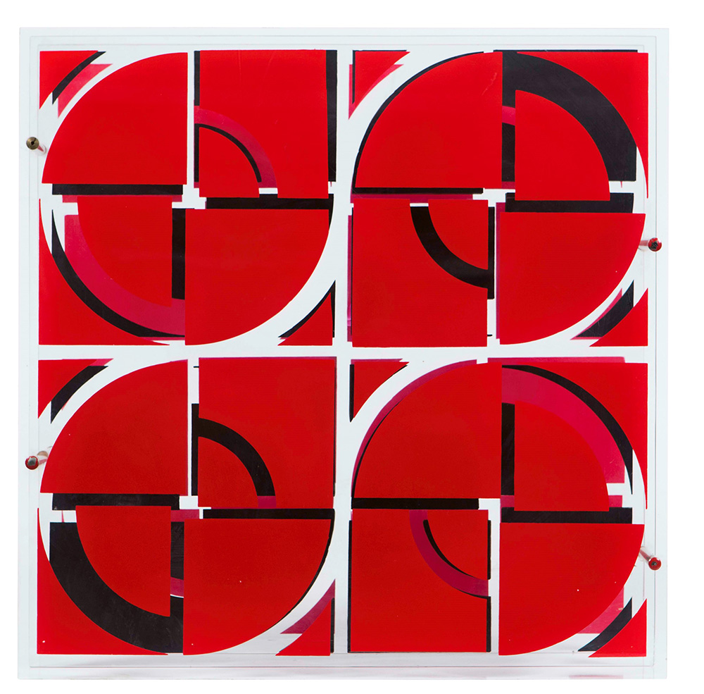 Giovanni Campus (1929), Senza Titolo, 1969 assemblaggio di pannelli in plexiglass serigrafati, cm 55x55 firmati e datati su ogni pannello , Provenienza: Centro Culturale Sincron, Brescia