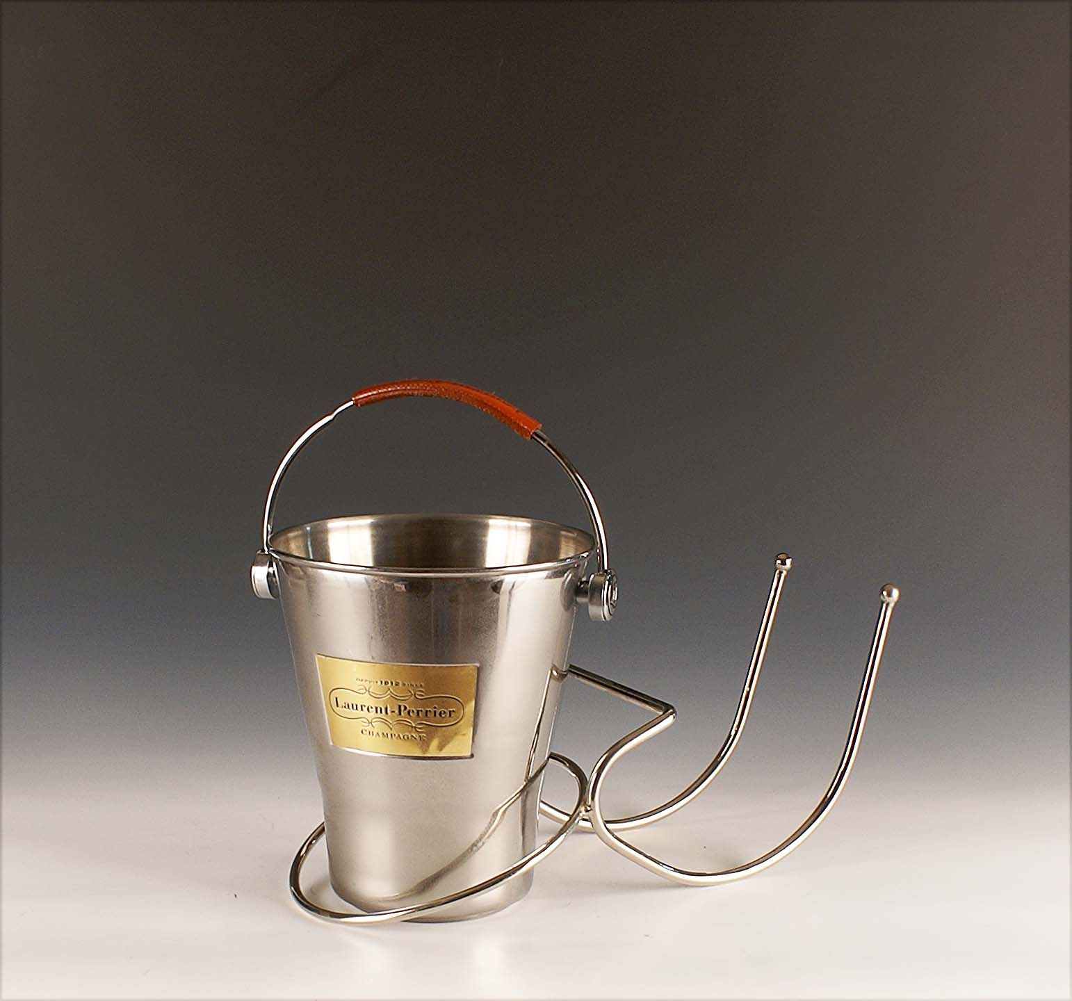 Secchiello portachampagne Laurent Perrier in metallo con relativo gancio per il tavolo.