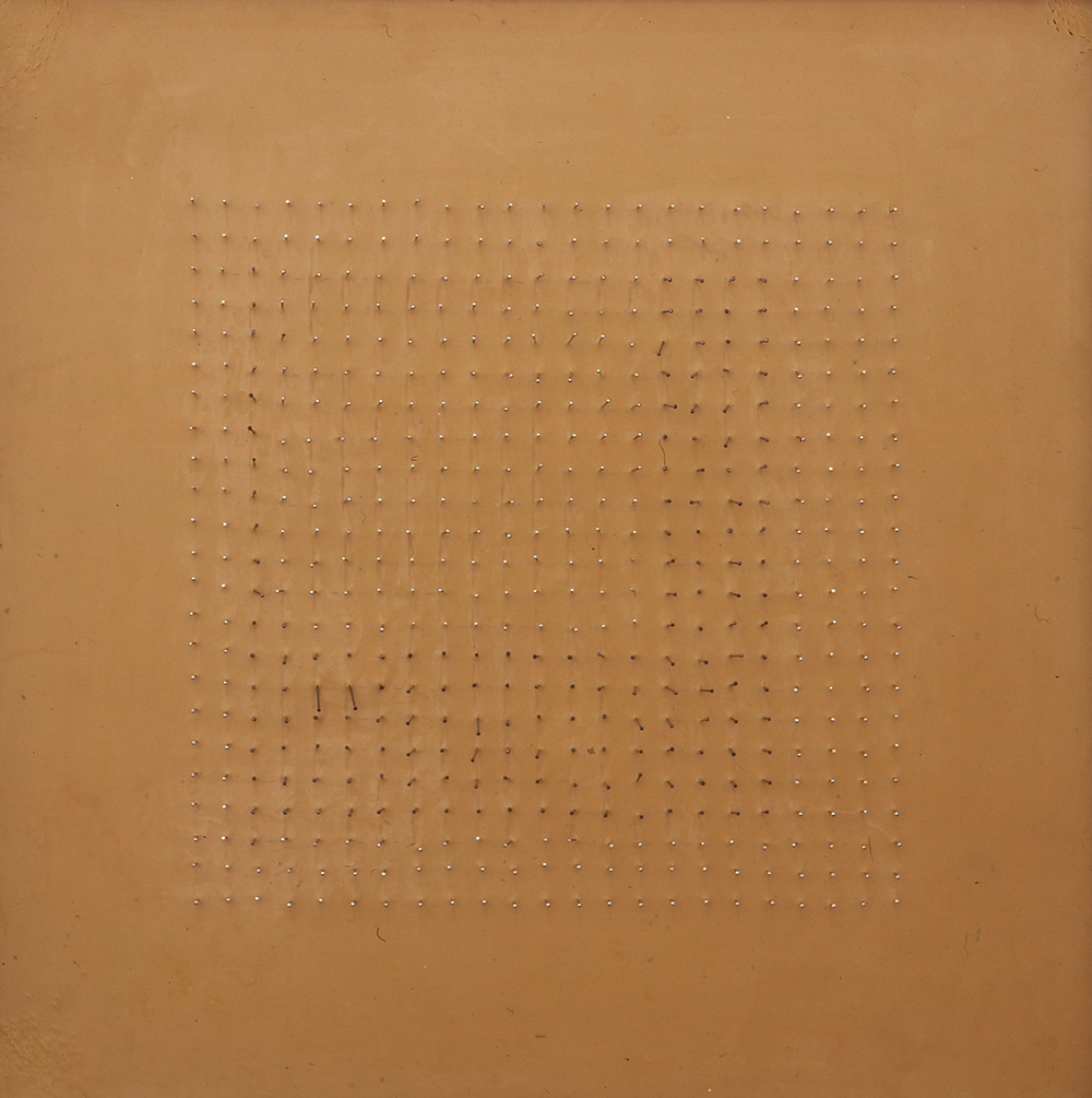 Gabriele De Vecchi (1938), Superficie in vibrazione A 7, 1959 tecnica elettromeccanica para, spilli, motore 2 TM v. 220, cm 49x49x10 firmato, datato e intitolato al retro , Esposizioni: Arte programmata e cinetica, 1953-1963: l'ultima avanguardia, a cura di Lea Vergine, Palazzo Reale, Milano, 1983-84 Arte programmatica e cinetica in Italia 1958-1968, a cura di Marco Meneguzzo, Galleria d'Arte Niccoli di Parma e poi Museo d'Arte di Nuoro, 2001 Luce, movimento & programmazione 1958-1968, a cura di V. Feierabend e M.Meneguzzo, dal 2001 al 2003, Ulmer Museum di Ulm (settembre-novembre 2001); Städtlische Kunsthalle Museum di Mannheim(novembre 2001–febbraio 2002); Städtlisches Museum di Gelsenkirchen (febbraio–aprile 2002); Stadtgalerie di Kiel (giugno–agosto 2002); Alpen-Adria-Galerie di Klagenfurt (dicembre 2002–marzo 2003) L'occhio in gioco. Opere tra percezione e optical, a cura di L. M. Barbero, M.Meneguzzo, E. Forin, Ex Municipio, Trissino, 2003 AnniCinquanta – La nascita della creatività italiana, Palazzo Reale, Milano, 2005 Roma – Pittura aperta. Il quadro materiale nell'Italia degli anni '50 e '60, a cura di P.Weibel, Zentrum fur Kunst und Medientechnologie, Karlsruhe, 2008 La magnifica ossessione, Mart, Rovereto, 2012-2013 Bibliografia: Arte programmata e cinetica, 1953-1963: l'ultima avanguardia, a cura di Lea Vergine, Palazzo Reale, Milano, Gabriele Mazzotta Editore, 1983 Luce, movimento & programmazione 1958-1968, a cura di V. Feierabend e M.Meneguzzo, Silvana Editoriale, 2001, p. 90 Arte programmatica e cinetica in Italia 1958-1968, a cura di Marco Meneguzzo, Galleria d'Arte Niccoli di Parma e poi Museo d'Arte di Nuoro, 2001, p. 14 L'occhio in gioco. Opere tra percezione e optical, a cura di L. M. Barbero, M.Meneguzzo, E. Forin, Ex Municipio, Trissino, Grafiche Aurora, 2003, p. 16 AnniCinquanta – La nascita della creatività italiana, Palazzo Reale, Milano, Skira, 2005, p. 469 Immagine materiale – Italia 1950-1965, a cura di P. Weibel, Fondazione Vaf, Silvana Editoriale, p. 357 VAF Stiftung La collezione, Catalogo generale, a cura di Daniela Ferrari, Silvana Editoriale, 2012, p. 484