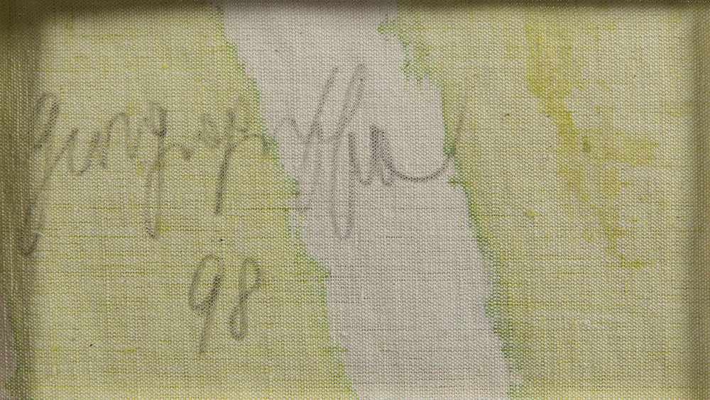 Giorgio Griffa (1936), Senza titolo, 1998 tempera acrilica su tela, cm 70x113 firmato e datato al retro Autentica su fotografia dell’artista