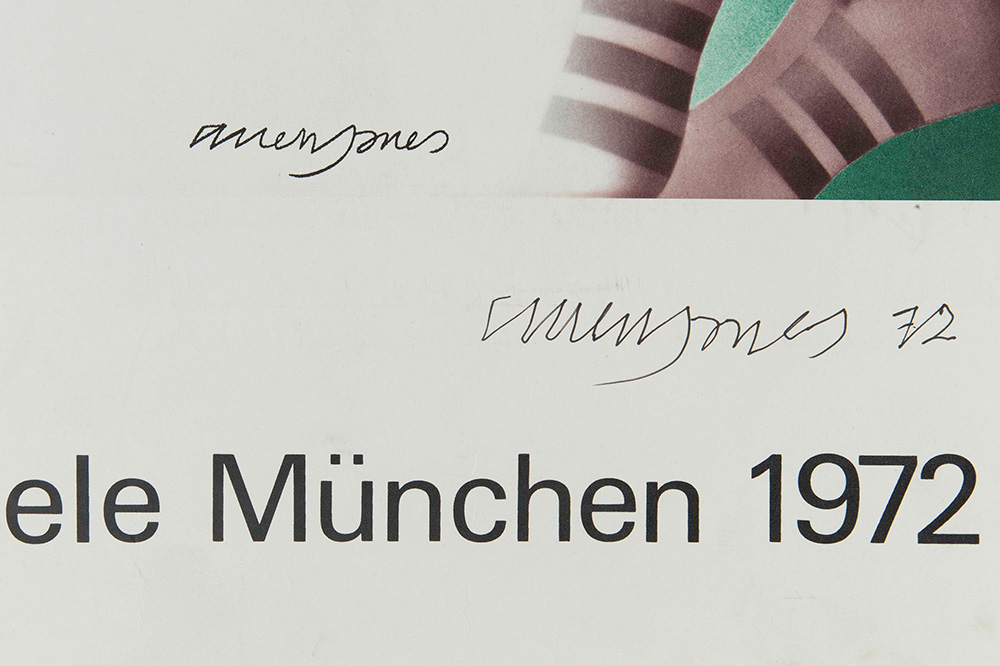 Roy Lichtenstein (1923-1997), Allen Jones (1937), POSTERS (2) cm 100x64 Roy Lichtestein, 1970-1980, Mostra personale, Orsanmichele, Firenze, maggio-agosto 1982 firmato e dedicato in basso a destra Allen Jones, 1972, Untitled - Olympic Poster firmato e datato in basso a destra