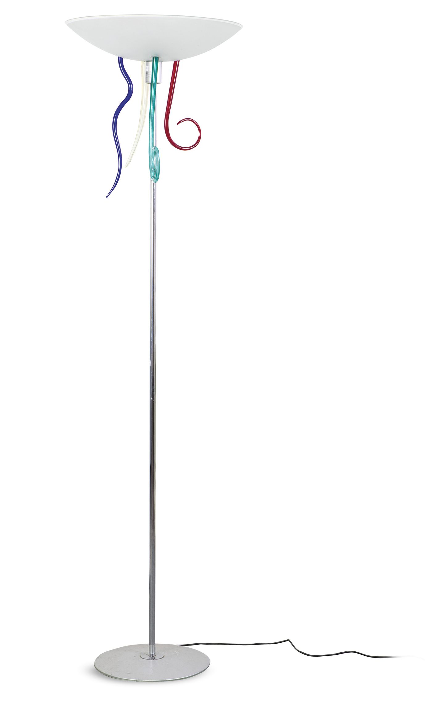 ANASTASIO ANDREA - Efesto, Lampada da terra. Metallo verniciato con coppa diffusore in vetro acidato, elementi decorativi in vetro soffiato. Artemide, collezione Milano-Venezia, 1992. cm 190