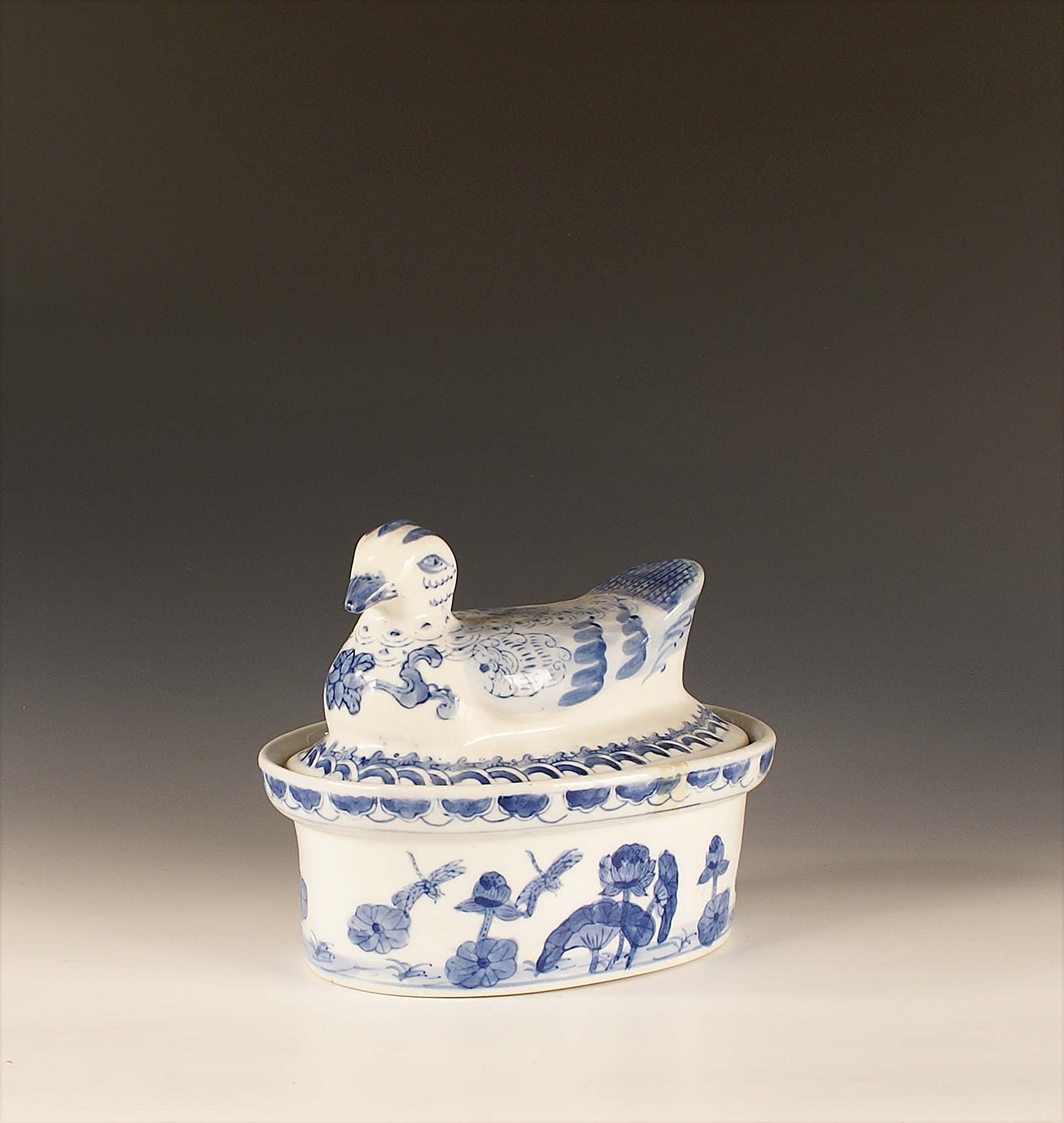 Lotto 737 | Legumiera in porcellana bianca e blu cobalto con coperchio a foggia di...