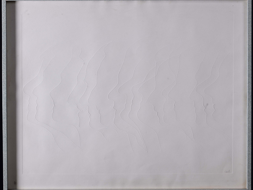 Mario Ceroli (1938), Teste calcografia su carta, cm 48x63 (la lastra), cm 57,5x73 (il foglio) firmato in basso a destra nella lastra es. 81/90