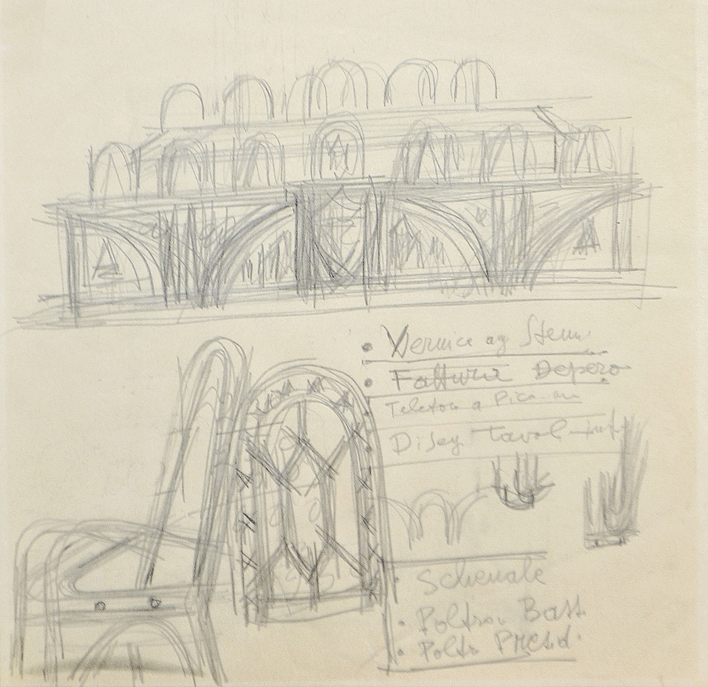 Fortunato Depero (Fondo 1892 – Rovereto 1960) Studio per mobili della sala...