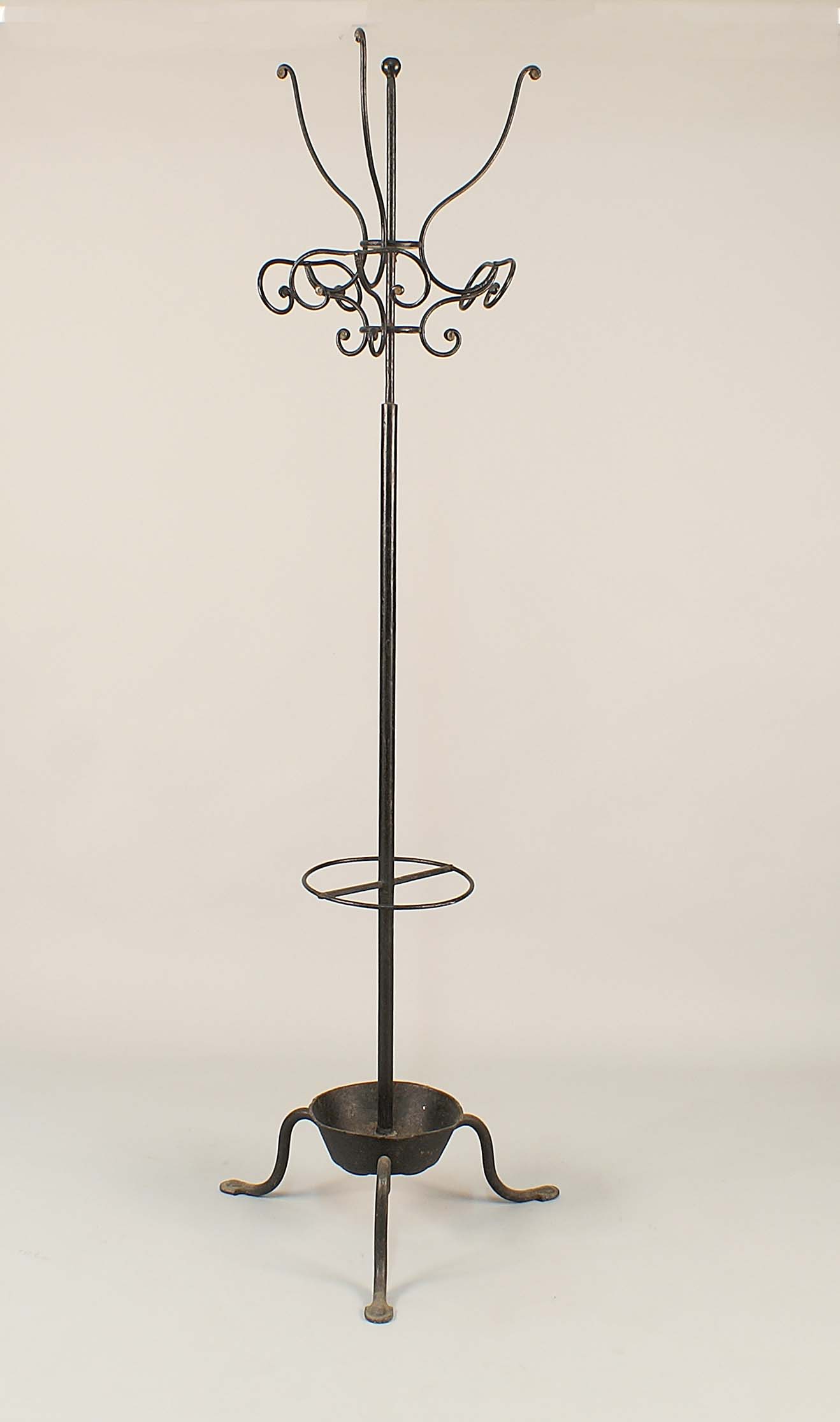 Appendiabiti con relativo portaombrelli in ferro battuto, vecchia manifattura, h. cm. 203.