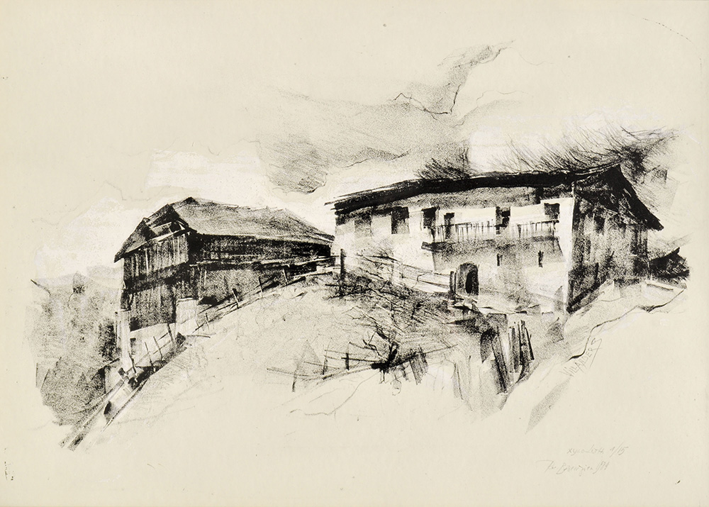 Höfe in Südtirol, 1980;Lithografie, 36 x 52 cm, gerahmt