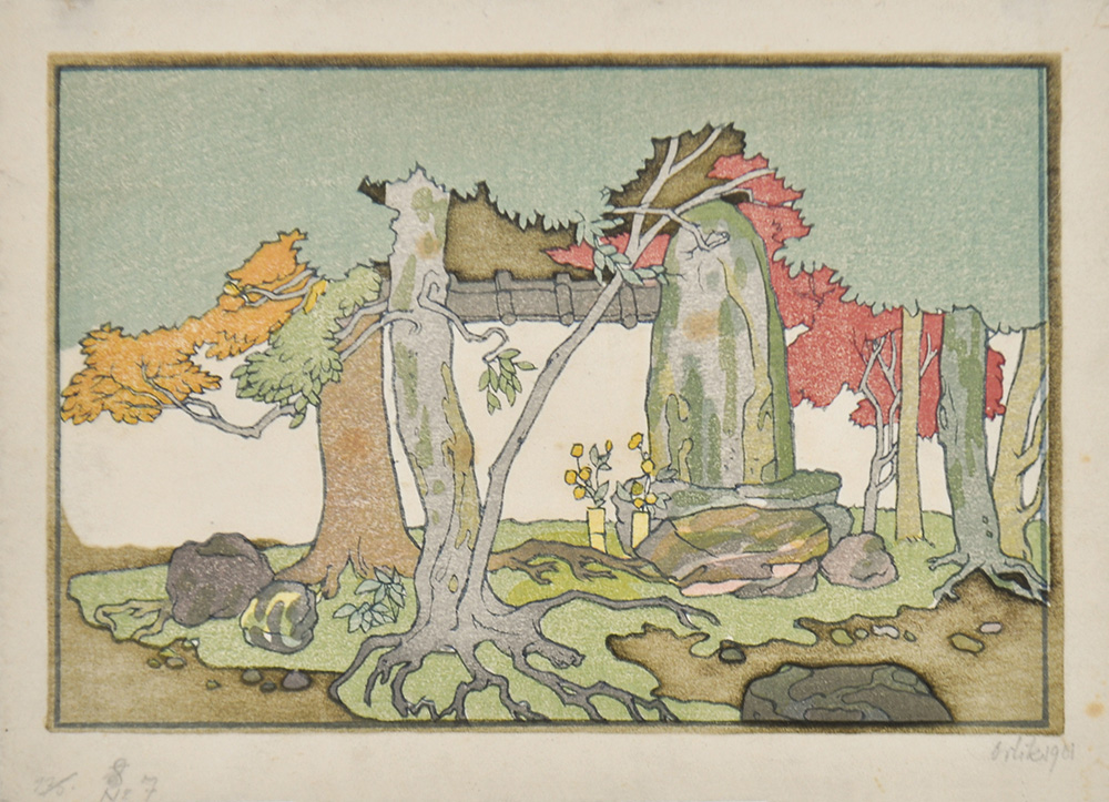 Farbholzschnitt, 12,7 x 19 cm (Darstellung)