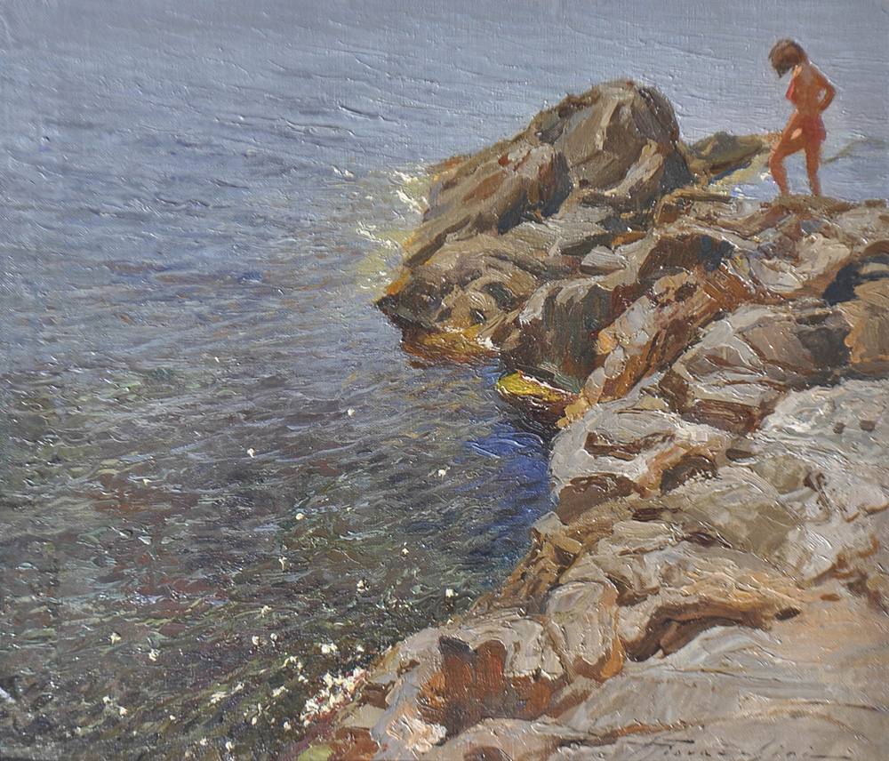 Ulderico Giovacchini (Firenze 1890 – Bozen 1965) Felsenküste mit Badende;Felsenküste mit Badender