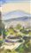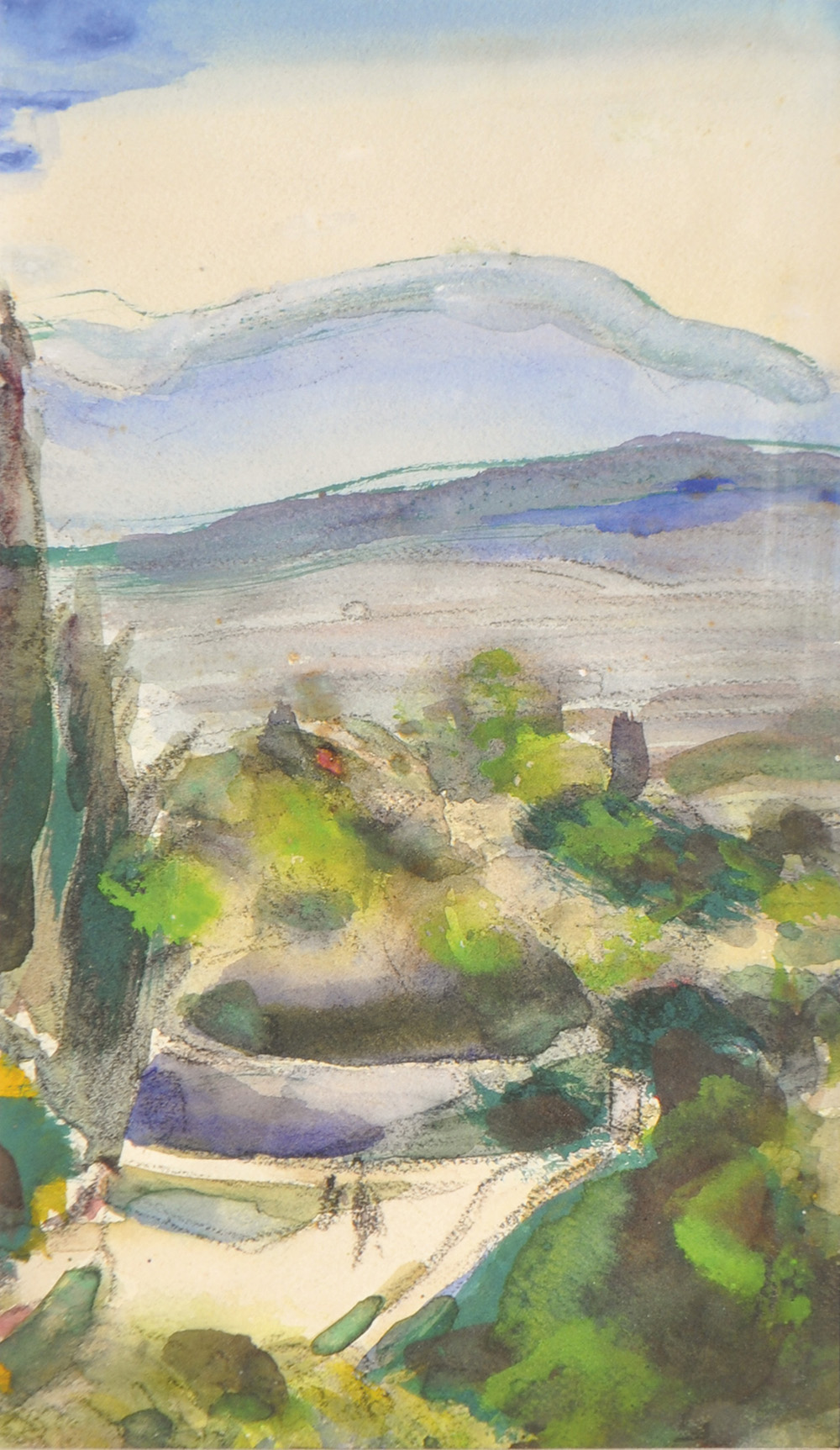Südliche Landschaft;Aquarell, Kohle, 26,5 x 15 cm., gerahmt
