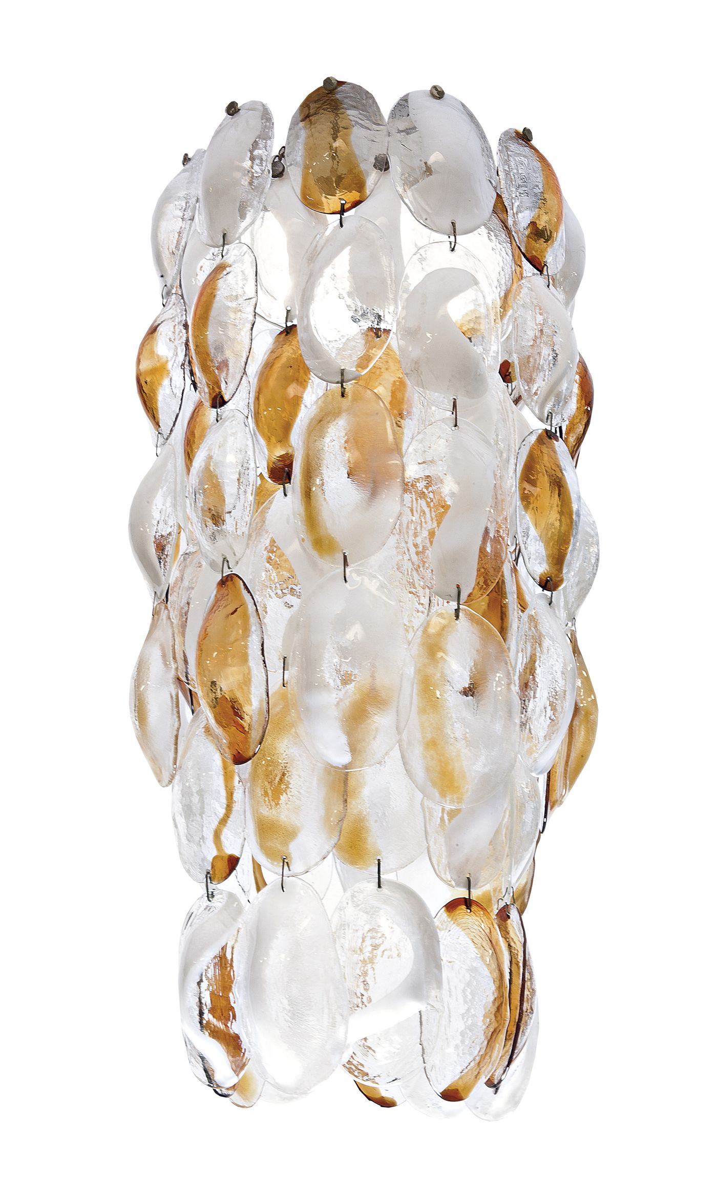 LAMPADARIO - Lampadario a plafone con pendenti in vetro di Murano in doppio ordine. Prod. Mazzega (?) 1970 circa. H cm 110, diam. cm 55