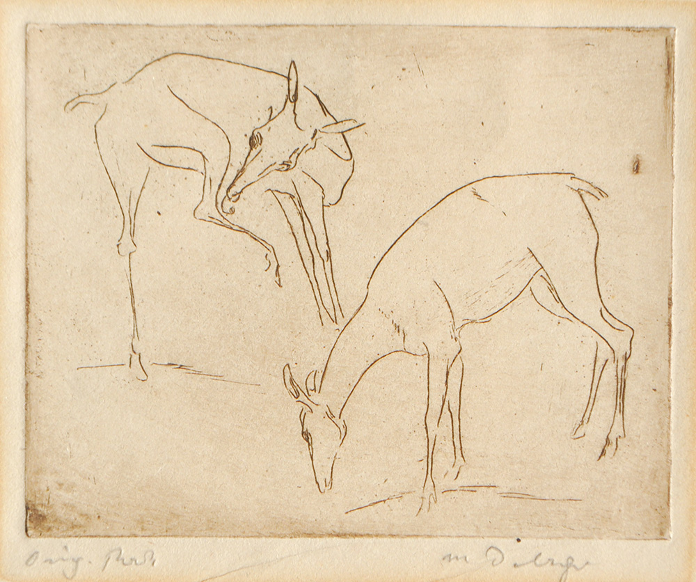 Maria Delago (St. Leonhard 1902 – Brixen 1979) Rehe;Rehe Radierung, 9 x 11,3...