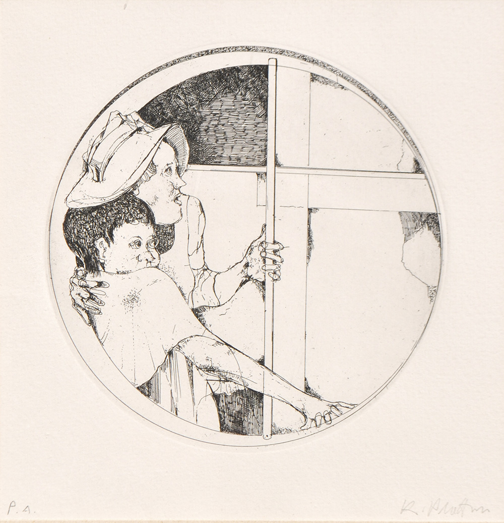 Radierung, Durchmesser 15,2 cm (Platte), gerahmt