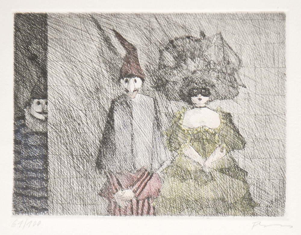 Paul Flora (Glurns/Glorenza 1922 – Innsbruck 2003) Venezianische Masken;Venezianische Masken