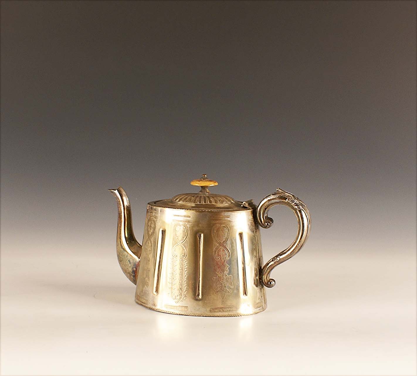 Teiera in sheffield, Inghilterra, vecchia manifattura, h. cm. 13.