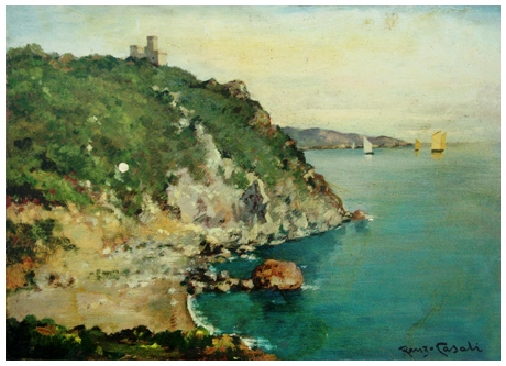 RENZO CASALI Livorno 1897 – Livorno 1977 Senza titolo 1958 Olio su tavola 30 x 40. Firma in b. a d.; sul verso firma e località + timbri, data e firme galleria Saletta Carmine, Livorno. 100