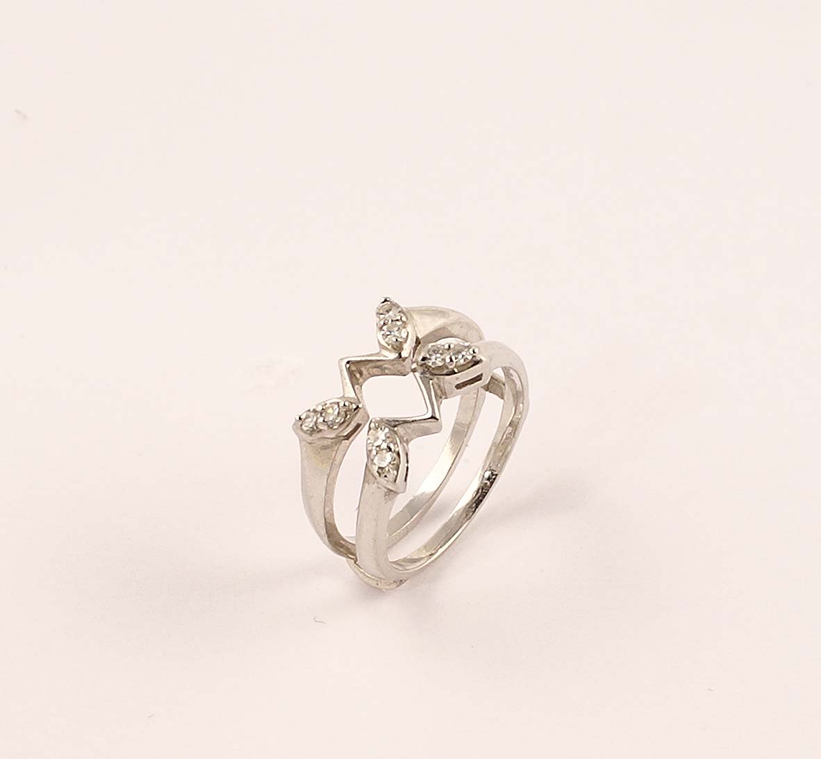 Anello fede americana in oro bianco 14kt con incastonati diamanti taglio brillante per 0,10 punti circa, gr. 4,2.