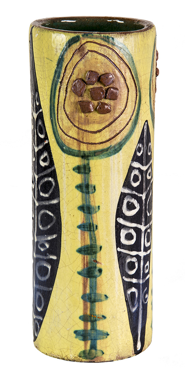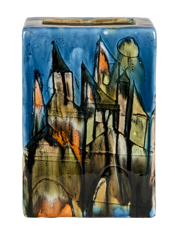 ELIO SCHIAVON, Tre vasi decorati a motivi astratti e architetture, Anni...