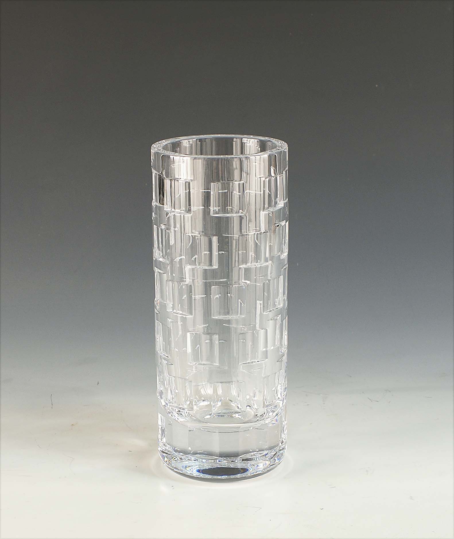 Piccolo vaso in cristallo molato a motivo geometrico, h. cm. 21.