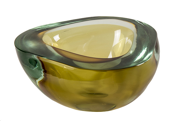 Lotto 37 | FLAVIO POLI, Posacenere in vetro sommerso giallo e verde, 1960 circa, Murano,...