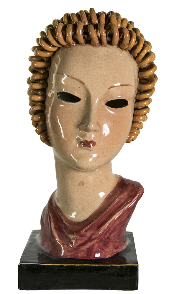 DERUTA - COCCHIONI, Busto di donna, Anni ‘30, Scultura in ceramica policroma, 23 x 10 x 10 cm,