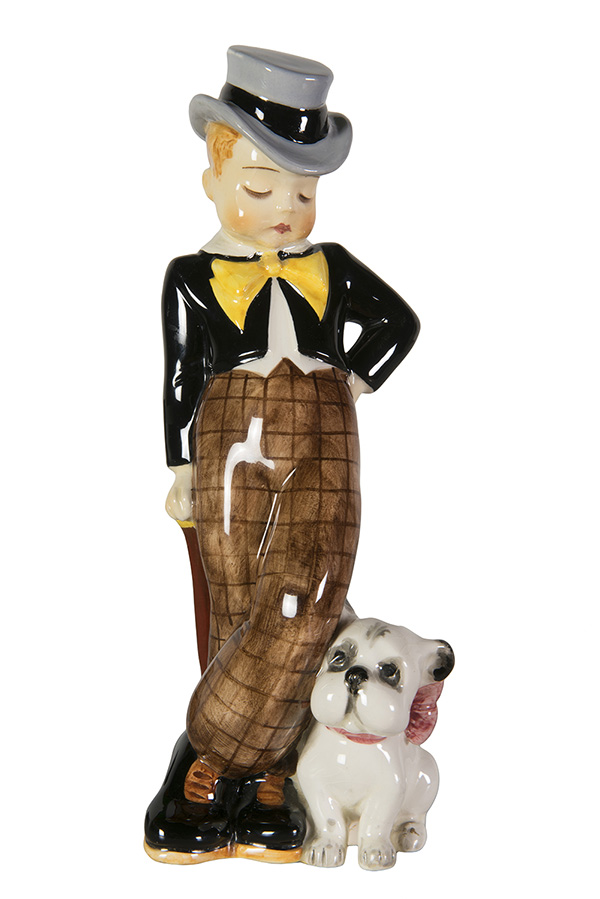 ROSENTHAL - GERMANIA, Bimbo col cane, Anni ‘30, Scultura in porcellana policroma, h. 23,5 cm, Timbro sotto la base: ROSENTHAL KERAMIK GERMANY
