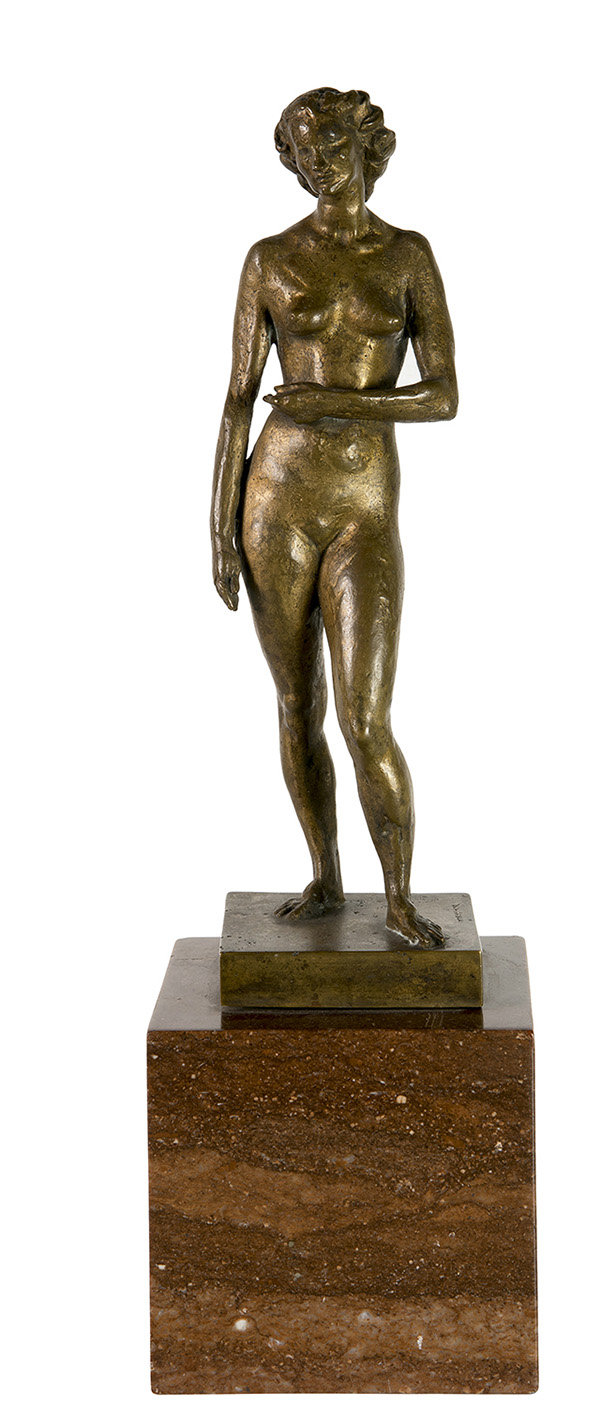 FRANCESCO MESSINA, Nudo femminile , Scultura in bronzo, h. 28,5 cm (con il supporto di marmo, h. 39,5 cm), Firma sulla base: Messina