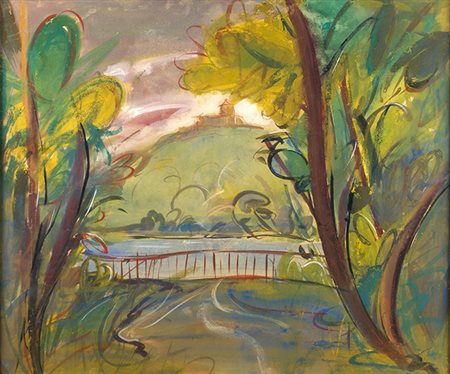 LUIGI SPAZZAPAN, Paesaggio, Olio su tavola, 50,3 x 60,5 cm, Autentica sul retro della Galleria Pogliani di Roma
