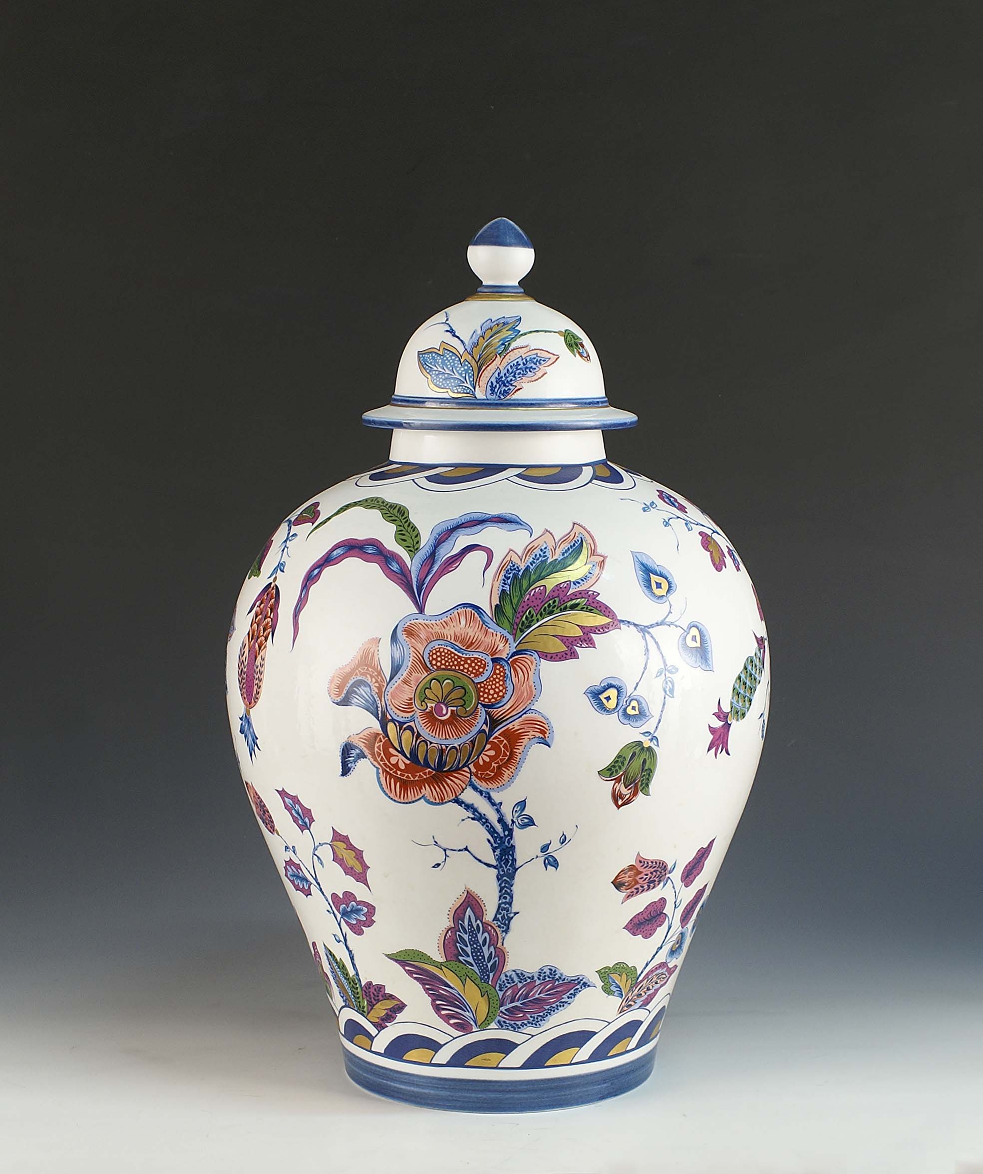 Potiches in porcellana bianca decorata e dipinta in policromia a motivo...