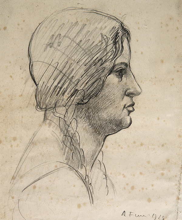 ACHILLE FUNI, Profilo di donna, 1925, Matita su carta, 24,5 x 20 cm, Firma e data in basso a destra: A. Funi 1925