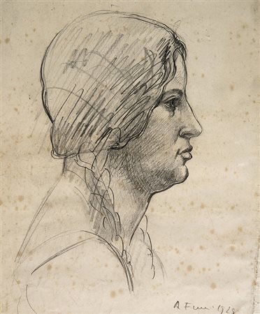 ACHILLE FUNI, Profilo di donna, 1925, Matita su carta, 24,5 x 20 cm, Firma e...