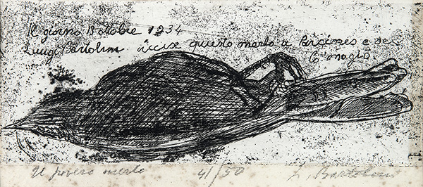 LUIGI BARTOLINI, Il povero merlo, Incisione, n. esemplare 41/50, 10,5 x 24 cm...