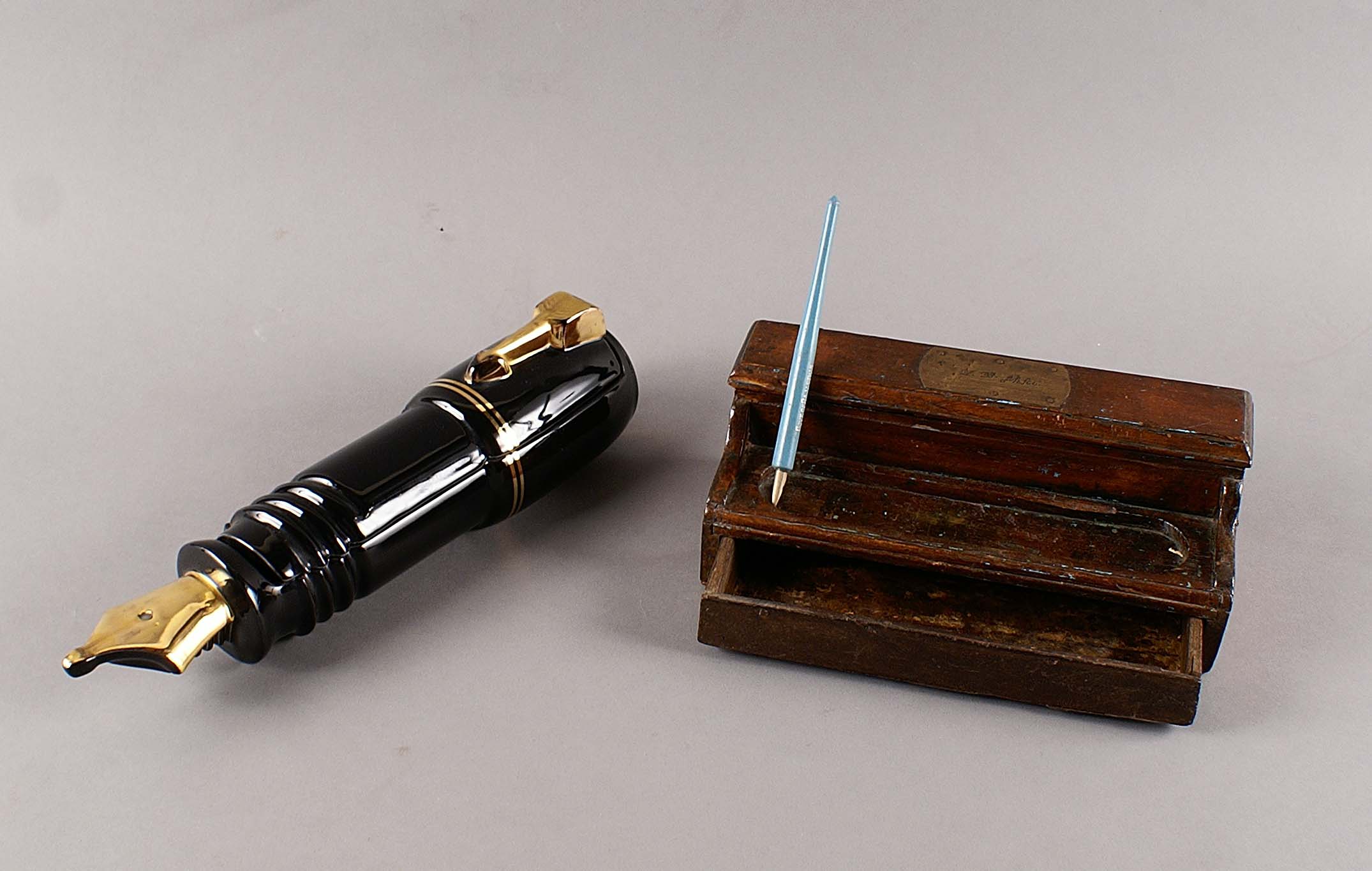 Lotto 832 | Lotto composto da un calamaio in legno con relativo pennino e da una scatola...