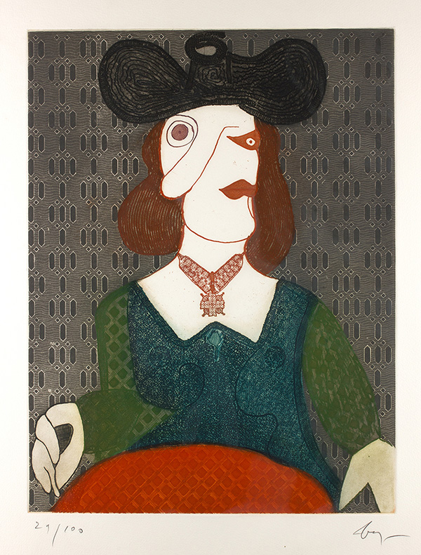 ENRICO BAJ, Ritratto femminile, Litografia, n. esemplare 29/100, 54 x 41 cm (la lastra), 80 x 60 cm circa (il foglio),