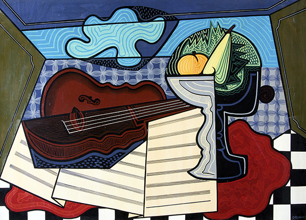 PIPPO ORIANI, Violino e fruttiera, Olio su tela, 50 x 70 cm, Firma in basso a...