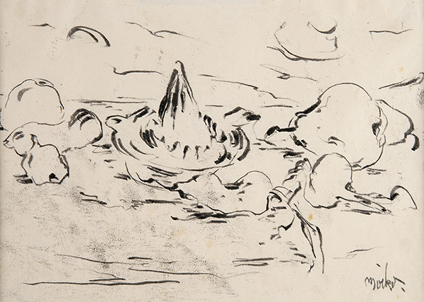 MIRKO BASALDELLA, Natura morta, Pastello a olio su carta, 19 x 27 cm, Firma in basso a destra: Mirko