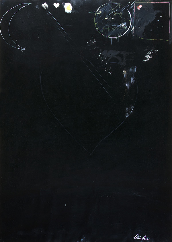 GIOSETTA FIORONI, Blù bar, 1974, Tecnica mista su carta lucida nera, 100 x 70 cm circa, Titolo in basso a destra: blù bar PUBBLICAZIONI Giosetta Fioroni, Galleria d’arte Vinciana, 20 novembre - 17 dicembre 1974, Milano